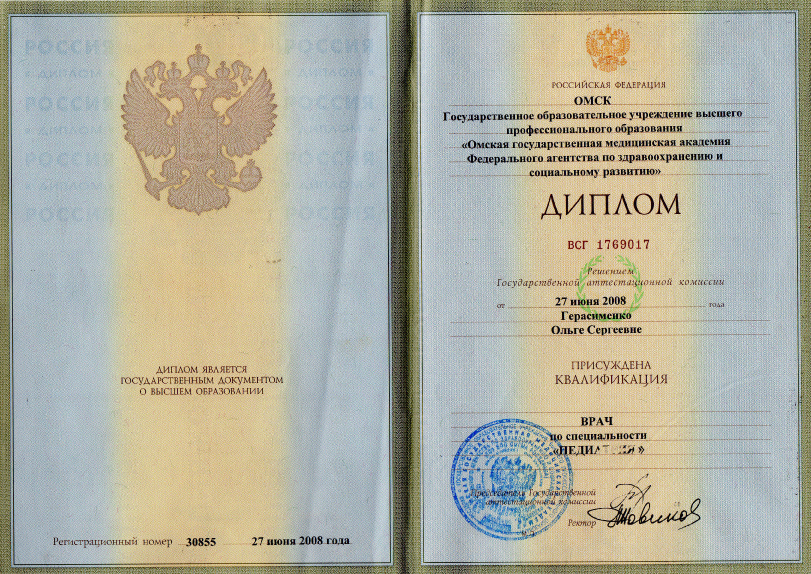Сертификат об окончании курса МАМА-ВРАЧ (без права консультирования и лечения третьих лиц).